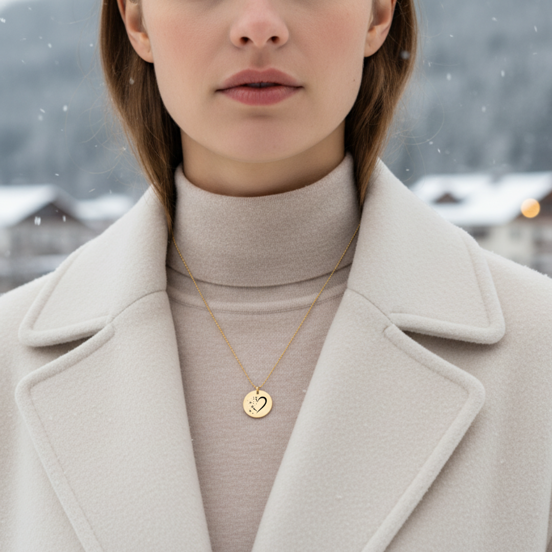 Unsere Winterprints-Halsketten fangen das Gefühl eines klaren Wintermorgens ein – mit liebevoll gravierten Anhängern, die den Zauber der kalten Jahreszeit widerspiegeln.